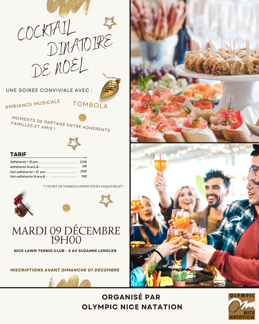 Réservation ici : https://www.helloasso.com/associations/olympic-nice-natation/evenements/cocktail-dinatoire-de-noel